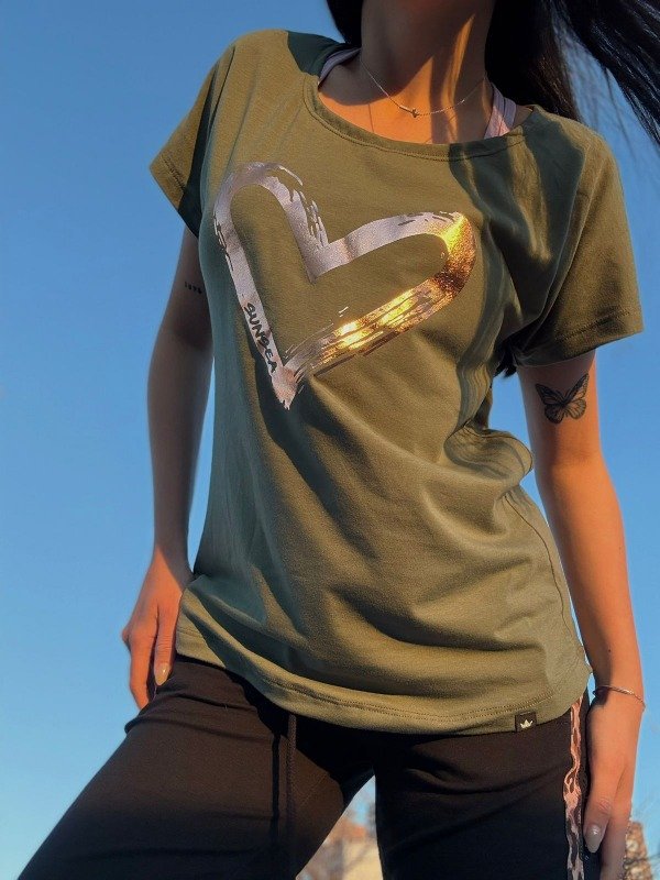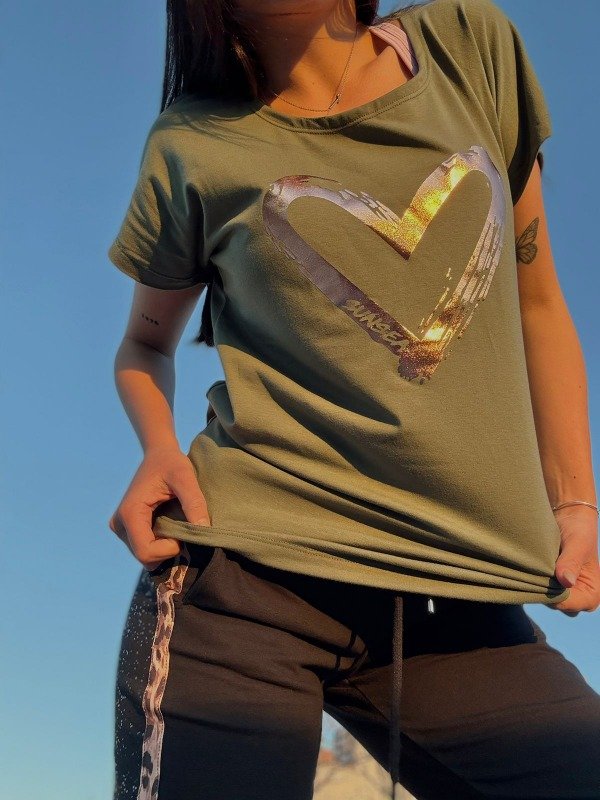Remera manga corta Verde militar corazon cobre 3200