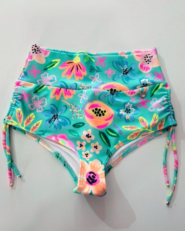 Medialess cintura alta con frunce lateral estampada flor 2252