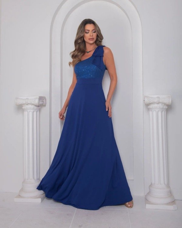 Vestido largo azul un hombro
