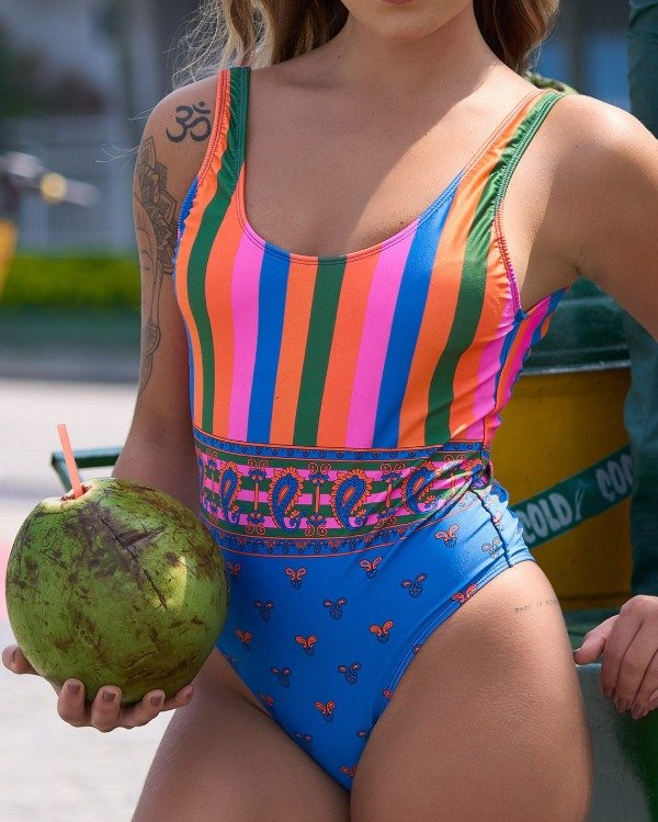 Enteriza con escote redondo, breteles anchos espalda alta SM